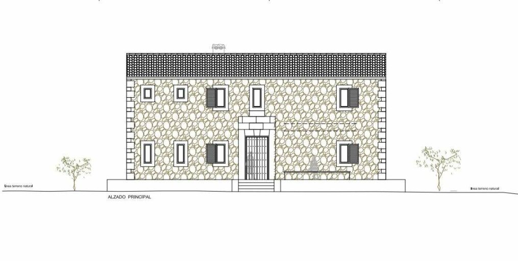 Das Grundstück hat eine Fläche von 16.299 m² und ist komplett von einer Steinmauer umgeben..